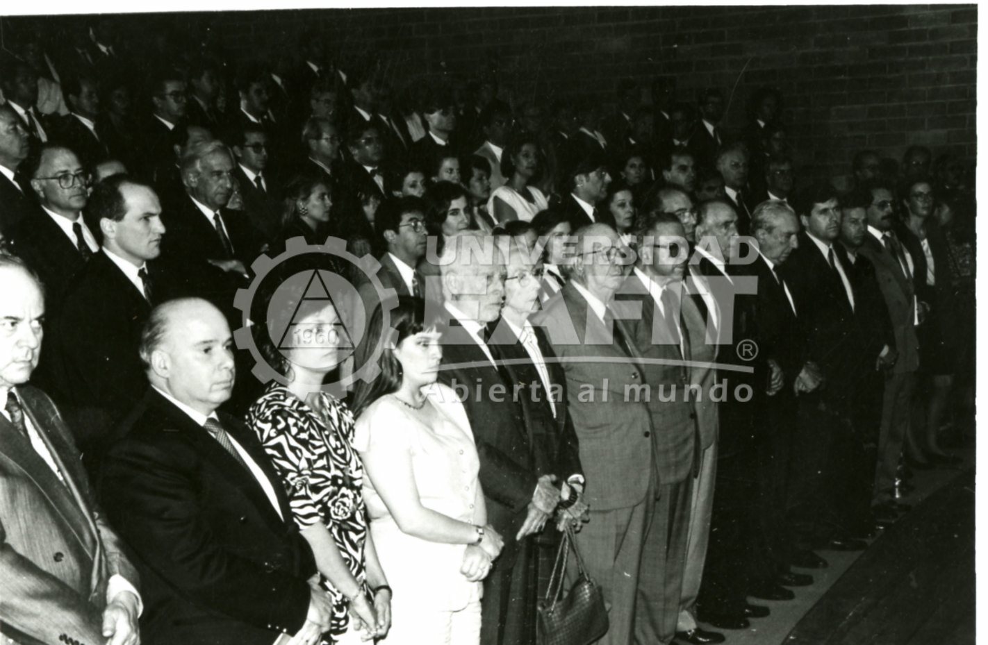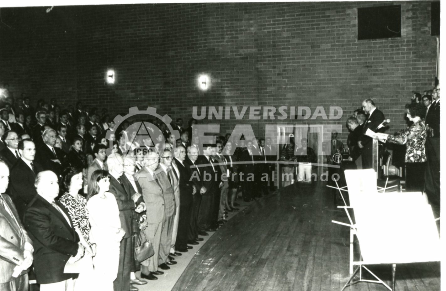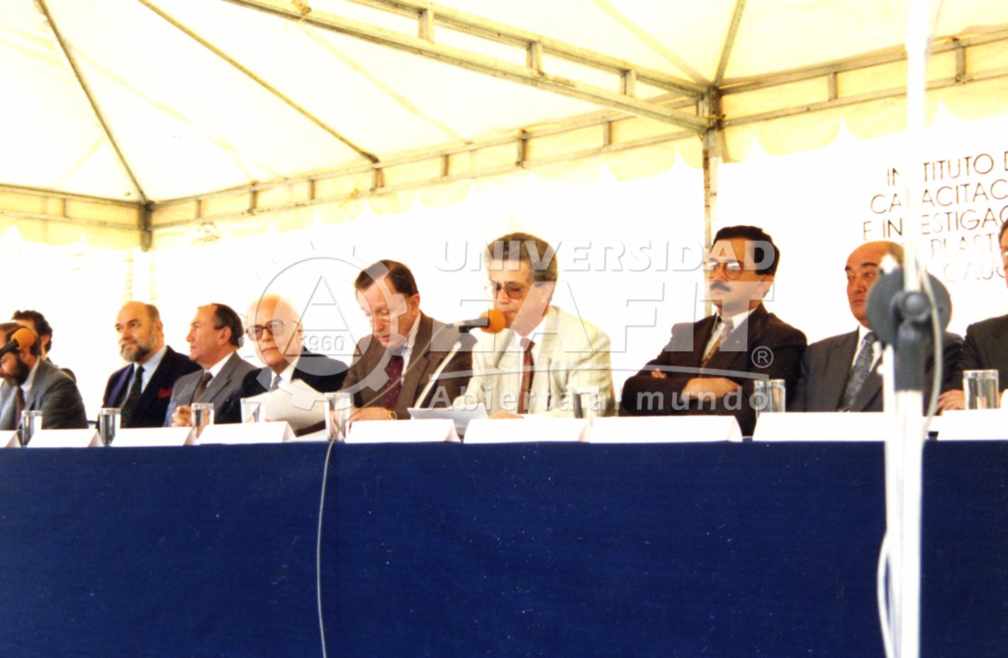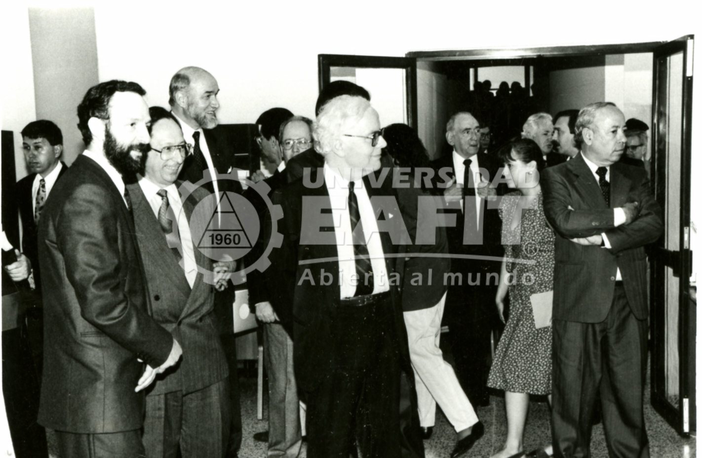 Fotografías tomadas durante la inauguración del Instituto de capacitación e investigación de plástico y del caucho, el 26 de noviembre de 1990, en las que se retratan directivos y asistentes desde diferentes ángulos. El 21 de abril de 1987 se crea la Fundación Instituto de capacitación e investigación de plástico y del caucho, el cual buscaba contribuir al incremento de la competitividad y productividad de las empresas del sector. Los socios fundadores fueron la compañía de plásticos FORMACOL y la Universidad Eafit, en compañía de la Asociación Colombiana de la Industria del Plástico -Acoplásticos-. Alemania ofrece su apoyo en 1988 a través de GTZ, por un periodo de diez años, a través de la donación de fondos para la adquisición de equipos de laboratorio, así como capacitaciones en instituciones alemanas. El instituto inicia operaciones el 22 de febrero de 1993 y, desde 1996, COLCIENCIAS brinda su apoyo a proyectos tecnológicos de innovación y desarrollo. Tomado de http://goo.gl/ommMPO