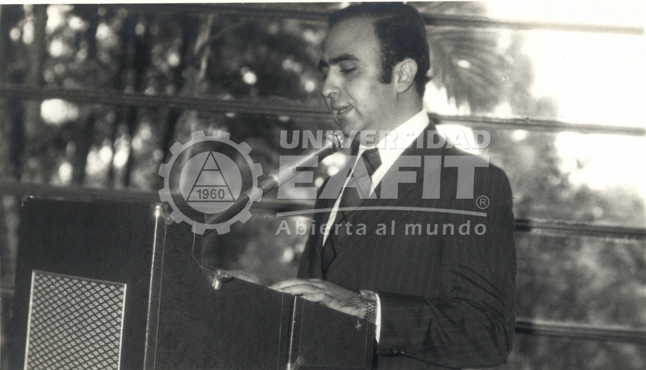 | dc.description.abstract | Fotografía tomada durante la ceremonia de instalación del Plan Máster en Administración en "Casamora", en la que se retrata de pie y de perfil, al entonces Rector de la Universidad Eafit, Darío Monsalve Uribe dando un discurso, el 1 de Octubre de 1973. Rector entre 1973-1975, comenzó gestiones el rector más joven que ha tenido la Universidad en toda su historia: Darío Monsalve Uribe, de 31 años, quien rápidamente se convirtió en el primer y único egresado de EAFIT en ocupar este cargo de tan alta distinción. Este administrador empezó como rector encargado en medio de una de las mayores crisis de la historia de EAFIT. Al principio de su administración se logró dar inicio a las actividades académicas de la maestría en Administración (MBA), pero en una sede diferente a la de La Aguacatala. Tomado de http://goo.gl/h4sbgP | spa |