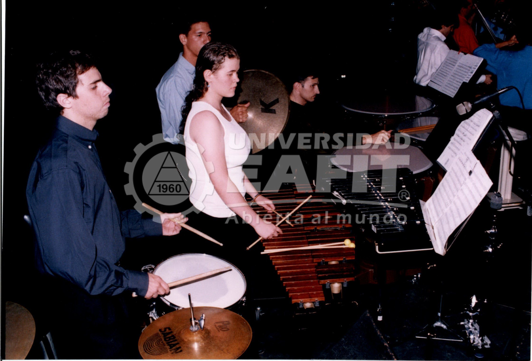 Fotografías tomadas durante un concierto al aire libre de la Orquesta Sinfónica EAFIT, desde diferentes ángulos, en el año 2003. La Orquesta Sinfónica EAFIT fue creada a comienzos del año 2000 para llenar un vacío existente en la ciudad desde que desapareció la Orquesta Sinfónica de Antioquia (OSDA). En su segundo año de funcionamiento (2001), la Orquesta recibió el premio de Colombiano Ejemplar, otrogado por el periódico El Colombiano de Medellín, en la categoría de Cultura.
