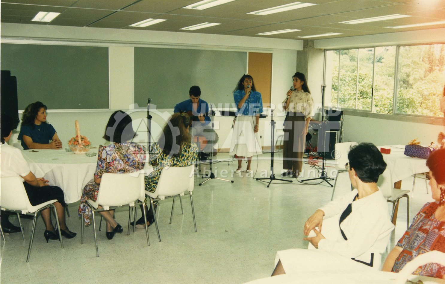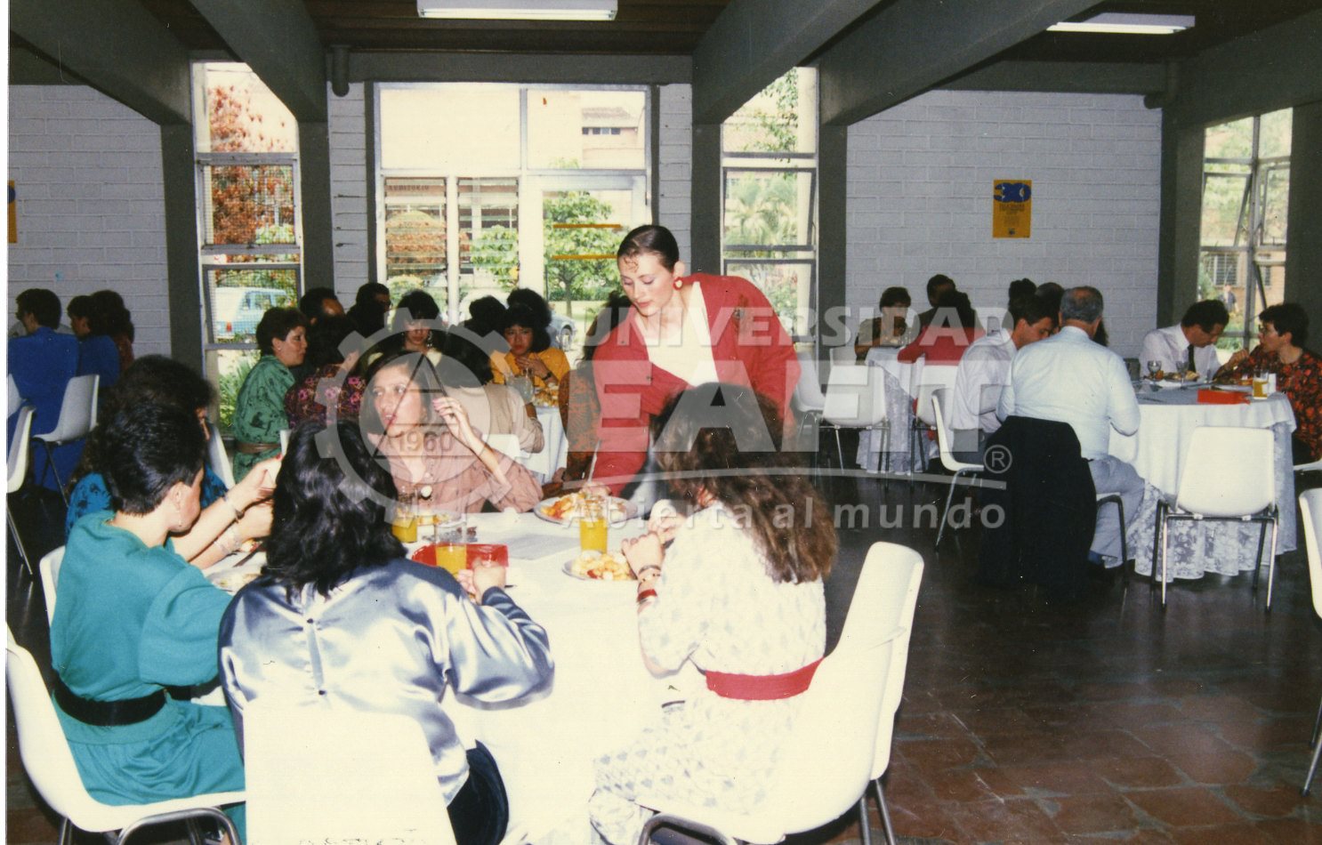 Fotografías tomadas durante la celebración del día de la secretaria, el 24 de abril de 1991, en la que se retrata a los asistentes sirviendo sus alimentos, desde diferentes ángulos. Se desconoce el lugar de las fotografías.