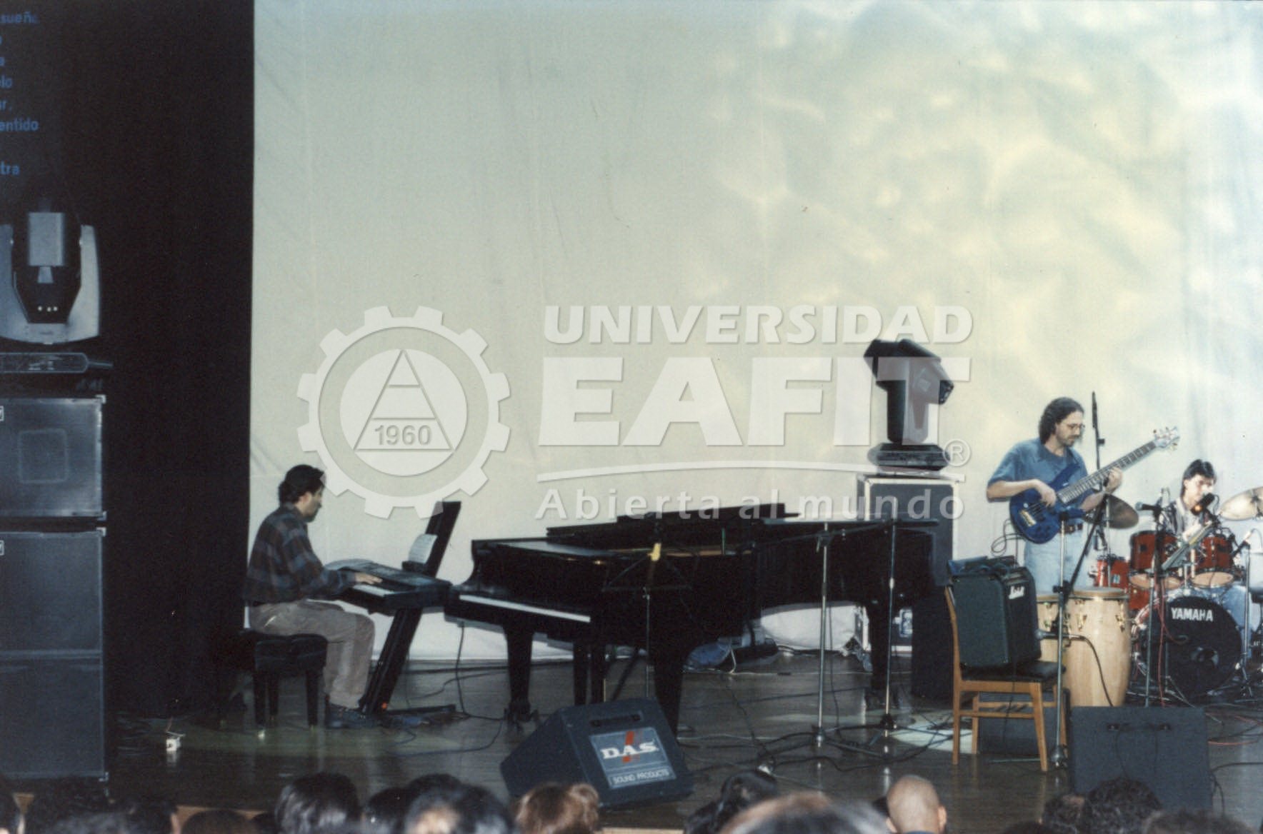Fotografía tomada durante la celebración del Primer Festival de Jazz, en el Auditorio Fundadores de la Universidad, en el año 1997. El escenario es el bar del Teatro Matacandelas, con la presentación de los grupos locales “Por Culpa de Blues”, “Colombian Jazz”, “Dizzy Jazz”, “Expreso Latino”, “El Sexteto”, “Alcatraz” y el guitarrista barranquillero “Gabriel Rondón”. Tomado de http://goo.gl/HbDGXD