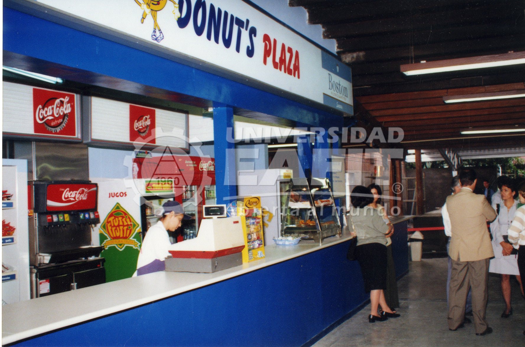 Vista interna de la cafetería central de la Universidad. Se destaca al lado izquierdo la cafetería Donut's Plaza ubicada en el Bloque 9.