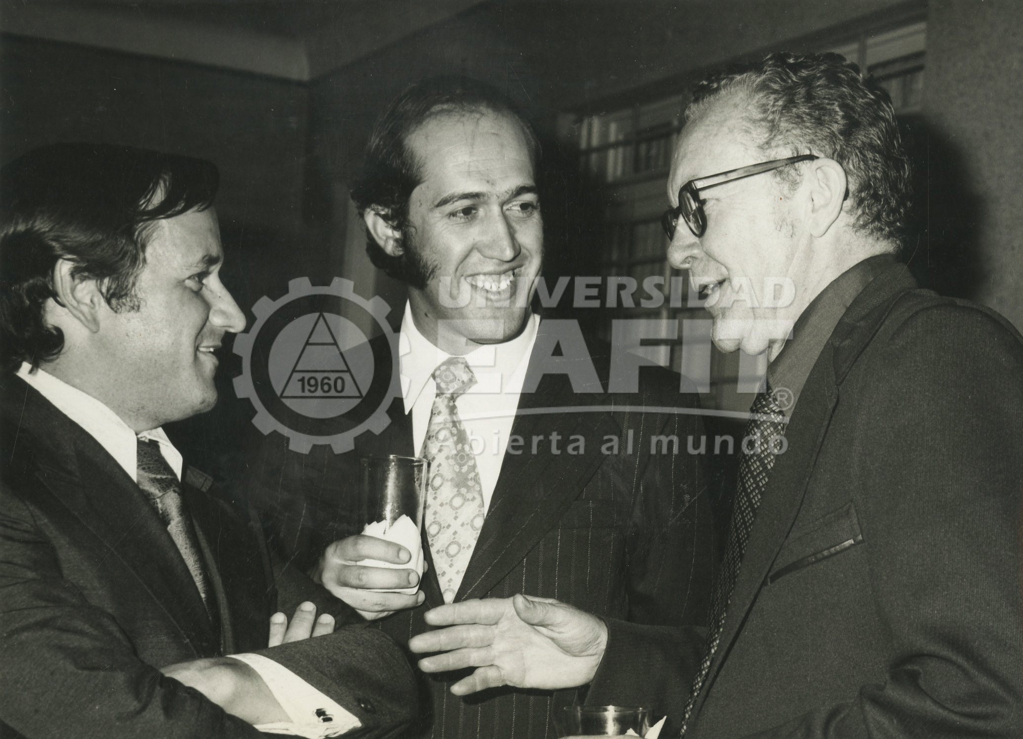 Fotografía grupal tomada de los integrantes de la Misión de The University of Georgia, junto a los directivos de la institución. Vista frontal. El Plan Máster en Administración y su diseño se efectuó mediante la cooperación de dicha misión. Dentro de los profesores de la misión se encontraban los Drs. Richard Still, Robert Tritt Asterios Kefalas, Mark Greene, Howard Smith y el Decano Flewellen.