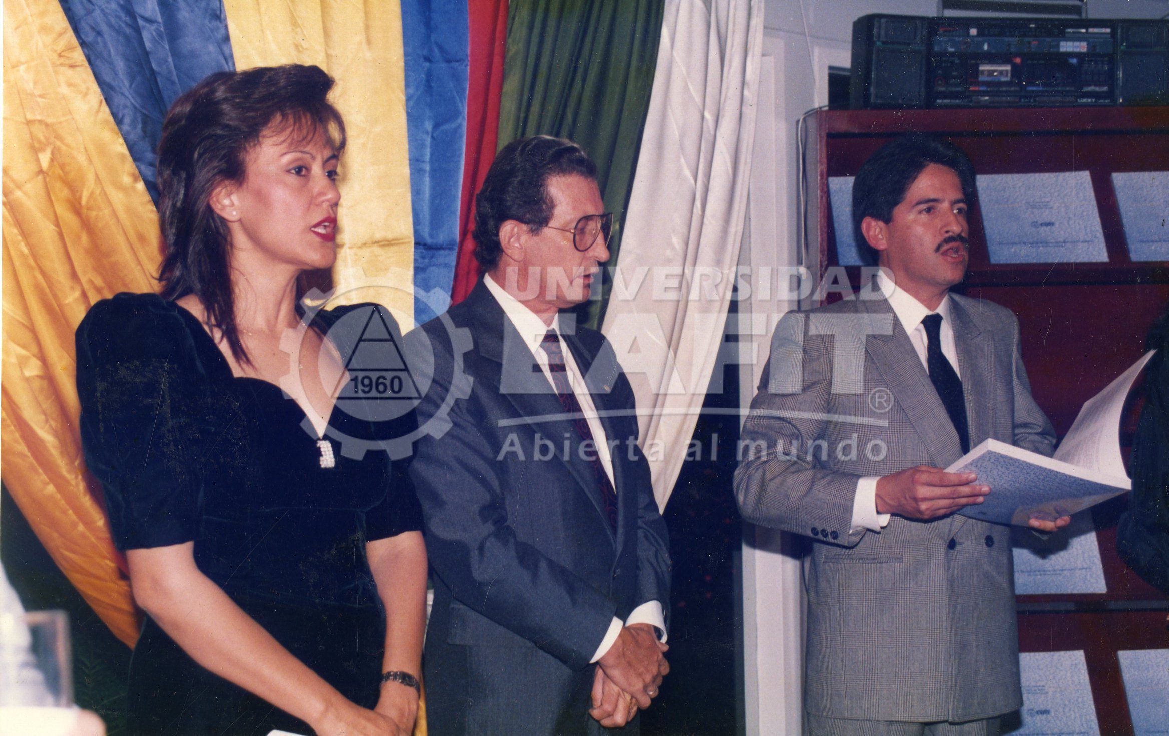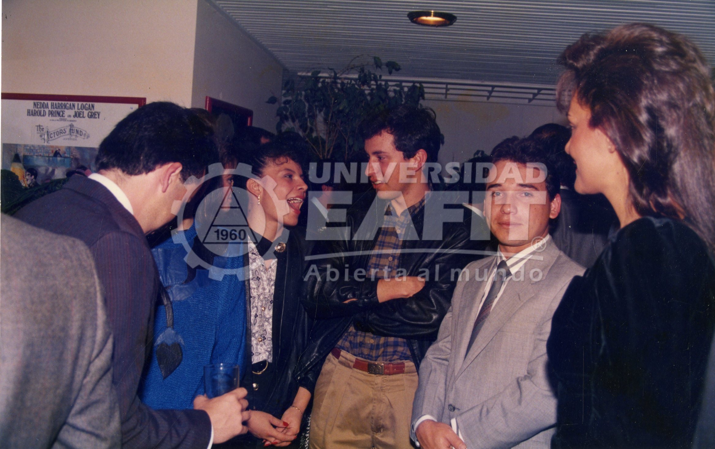 Fotografías tomadas durante la celebración de los 30 años de fundación de la Universidad y la presentación del libro "30 años al servicio de la educación superior en Colombia", escrito por Juan Fernando Molina, en la sede Bogotá, en la que se retrata a los asistentes desde diferentes ángulos.
