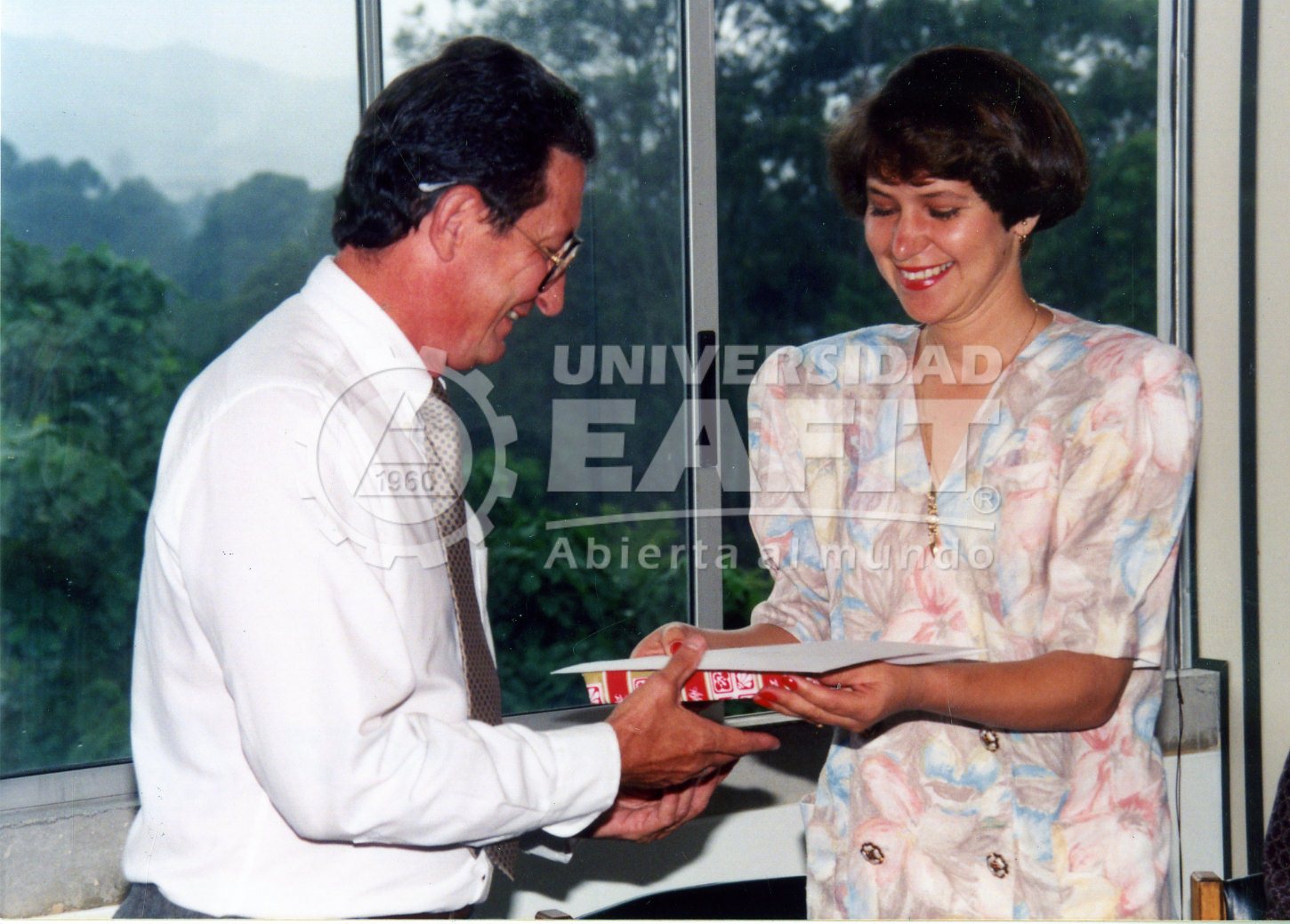 | dc.description.abstract | Fotografía tomada durante una reunión sin identificar en la que se retrata a Guillermo Sanín, Rector de la Institución, en compañía de María Rocío Londoño, jefe del Departamento de Deportes. Se desconoce la fecha de la fotografía. Rector entre 1983-1995, este ingeniero químico de la Universidad de Antioquia llegó a la Rectoría de EAFIT en 1983. Sin embargo, su presencia en las aulas eafitenses se remonta al año 1970, donde comenzó su labor como docente y fue nombrado director de Planeación Académica. Su rectoría, que hasta el momento ha sido la más prolongada en la historia de EAFIT, culminó en 1995. Luego de su administración, Guillermo Sanín se desempeñó como profesor en Ingeniería de Procesos y director de EAFIT Llanogrande. Tomado de http://goo.gl/Q1AJII | spa |