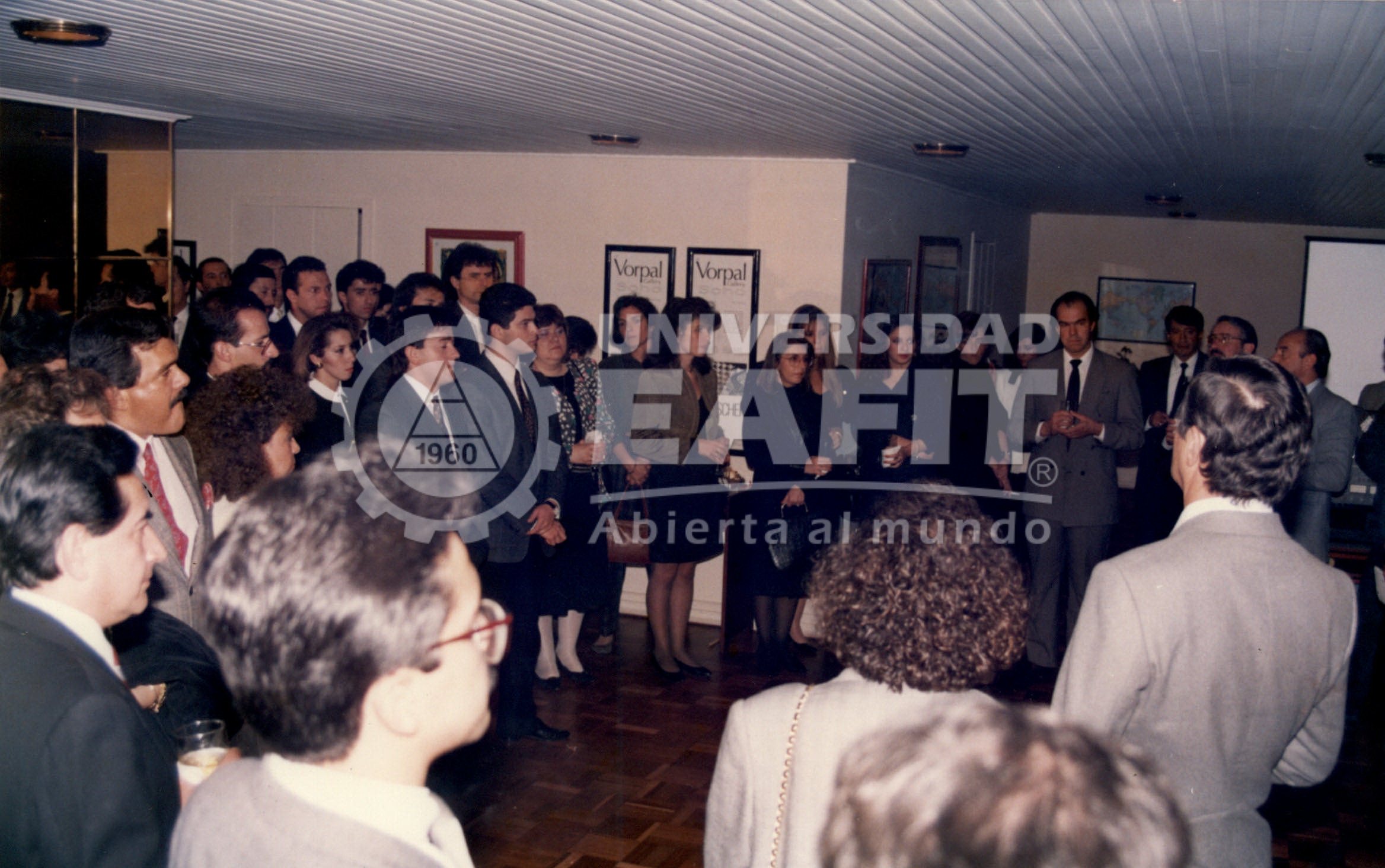 Fotografía tomada durante la celebración de los 30 años de fundación de la Universidad y la presentación del libro "30 años al servicio de la educación superior en Colombia", escrito por Juan Fernando Molina, en la sede Bogotá, en la que se retrata a los asistentes desde diferentes ángulos.