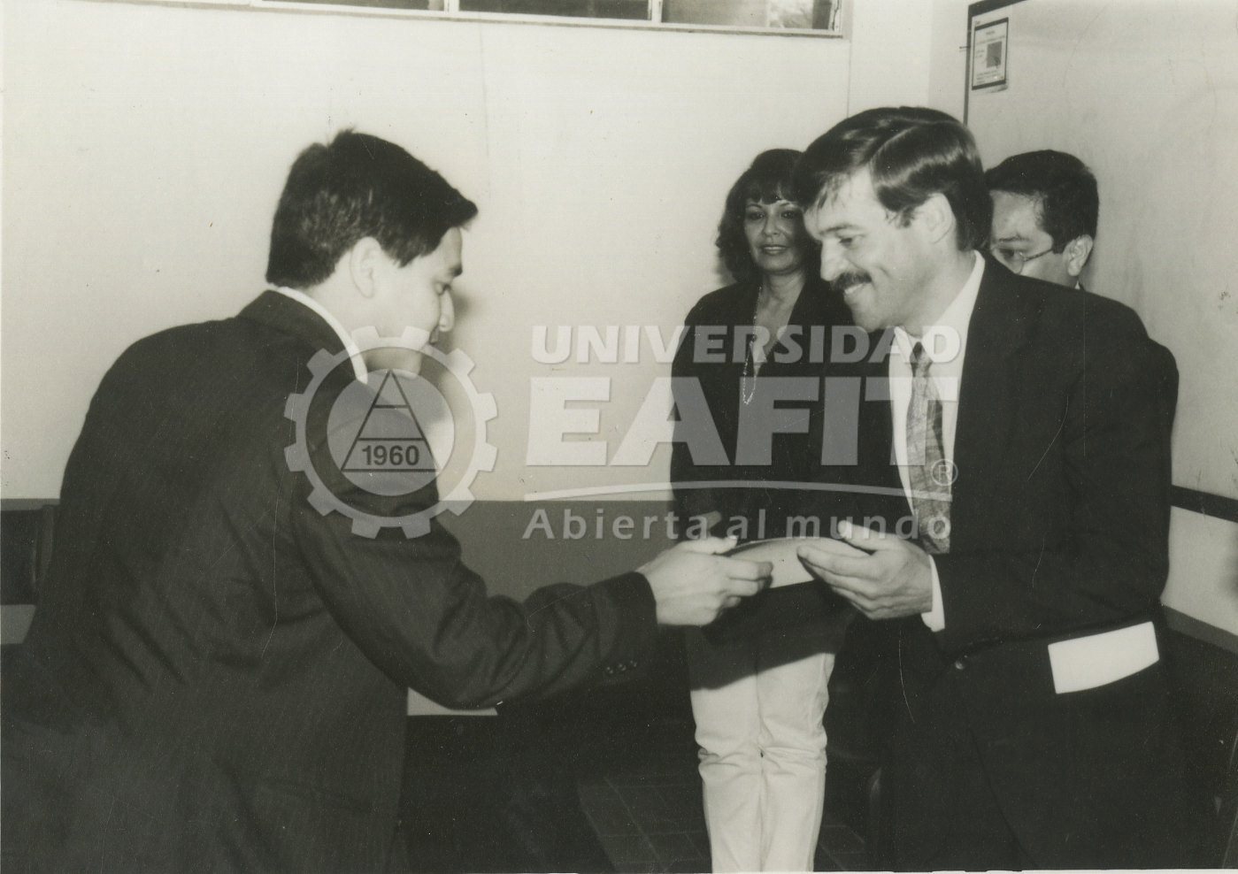 | dc.description.abstract | Fotografía tomada durante el acto de clausura de algún programa de educación continua de la Universidad, el 1 de marzo de 1996. Se desconoce el lugar de la fotografía. Aparecen en esta fotografía : María Victoria Jiménez, jefe de comunicaciones ; Juan Guillermo Arango, Director Centro de Informática ; Carlos Alberto Loaiza, Decano de Administración. | spa |