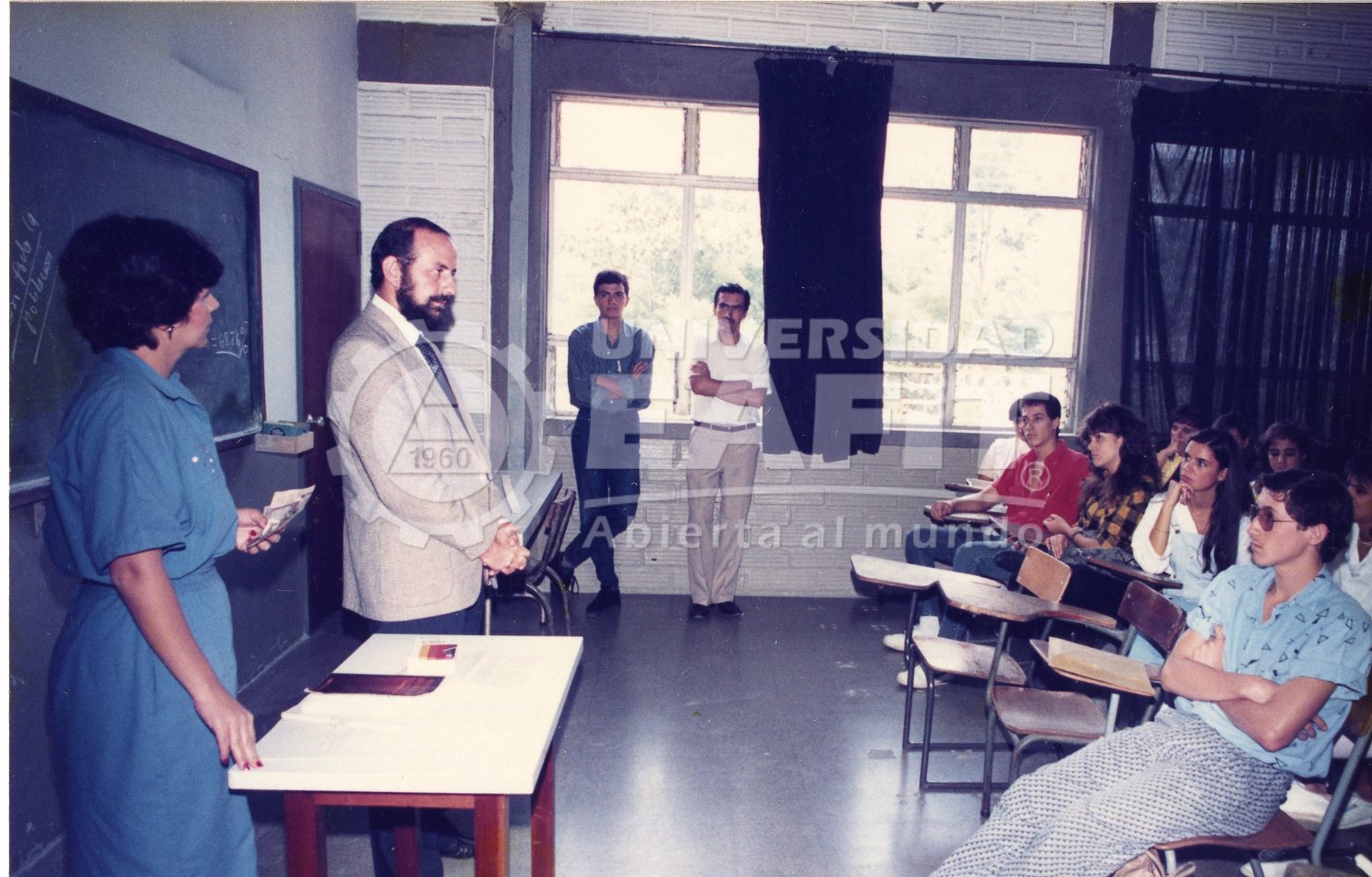 Fotografías tomadas durante las donaciones recibidas para el Auditorio de la Universidad, en las que se retrata a la comunidad universitaria y directivos durante dicha actividad, el 8 de mayo de 1987, desde diferentes ángulos.