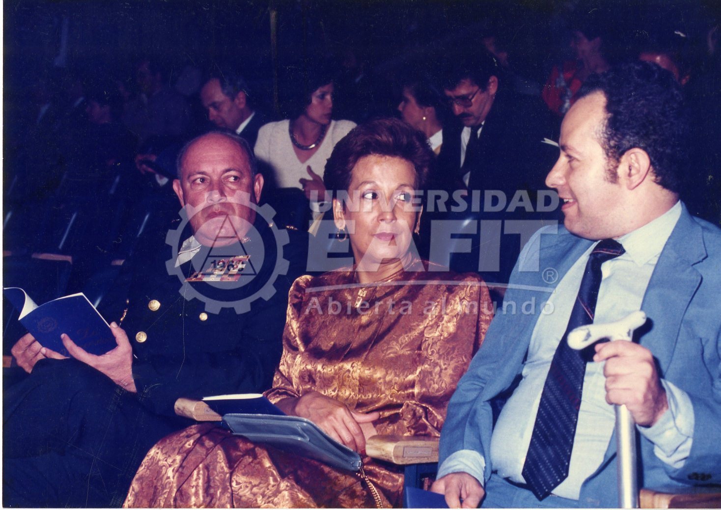 Fotografía grupal tomada durante la celebración de un concierto en el Auditorio Fundadores de la Universidad, en la que se retrata a los asistentes desde una vista lateral. Se desconoce la fecha y el nombre del evento.