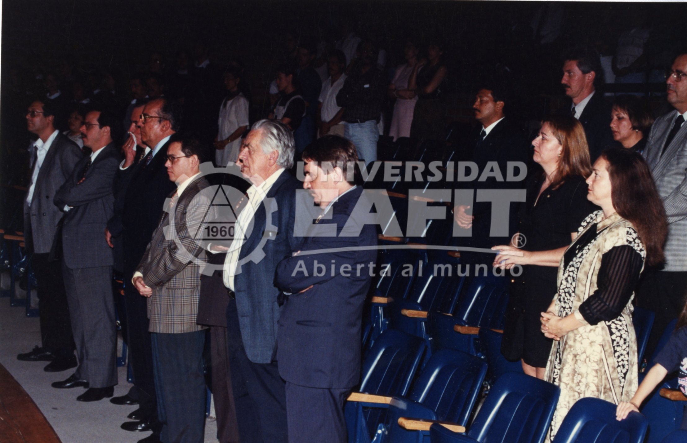 Fotografías tomadas durante la celebración de los 37 años de fundación de la Universidad Eafit, en las que se retrata desde diferentes ángulos a directivos y asistentes.