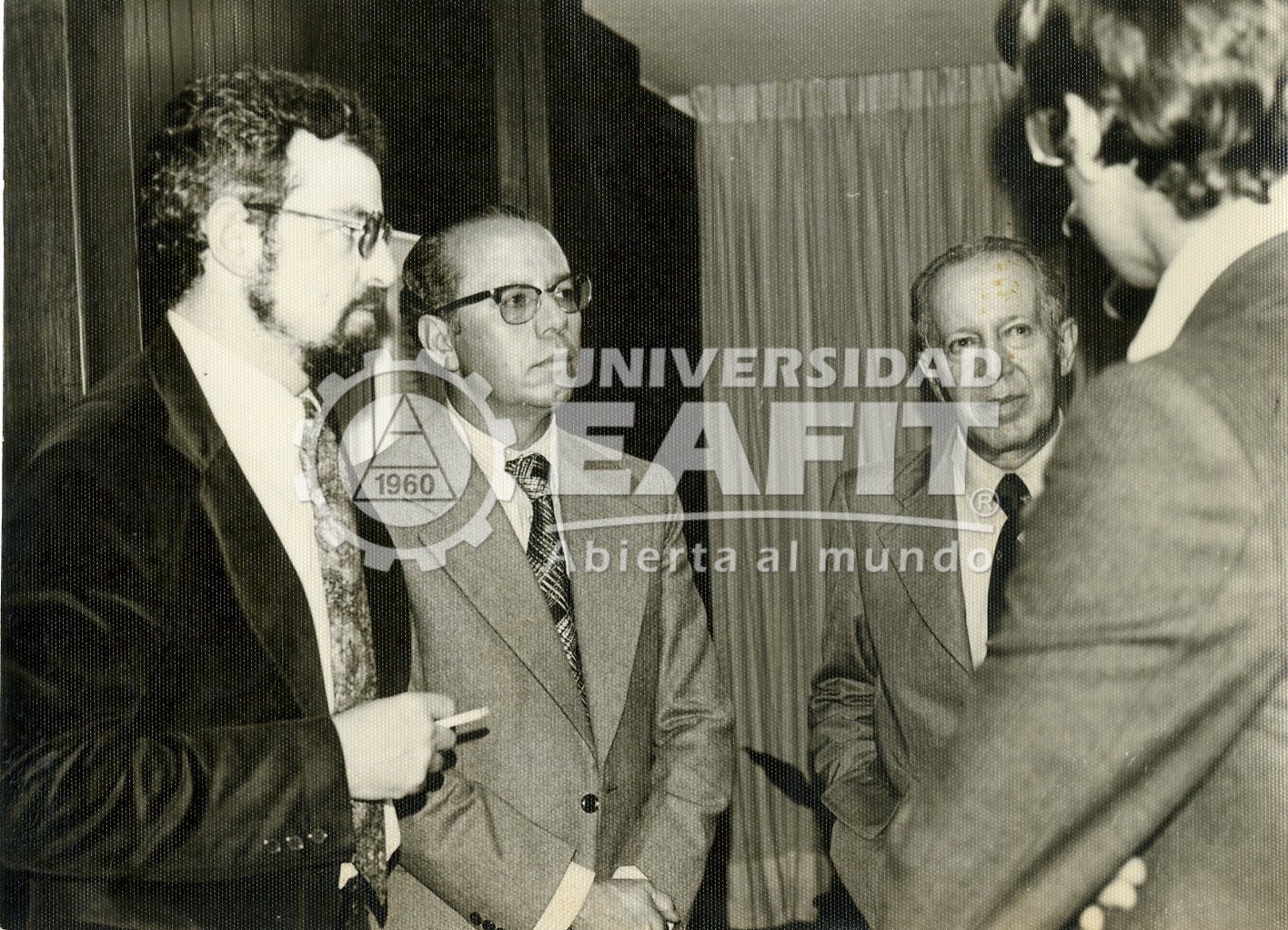 Fotografía tomada durante el coctel ofrecido en la gestión tecnológica en la industria de alimentos, en la tercera reunión para investigadores, celebrada el 18 de noviembre de 1977. Se desconoce el lugar de la fotografía.
