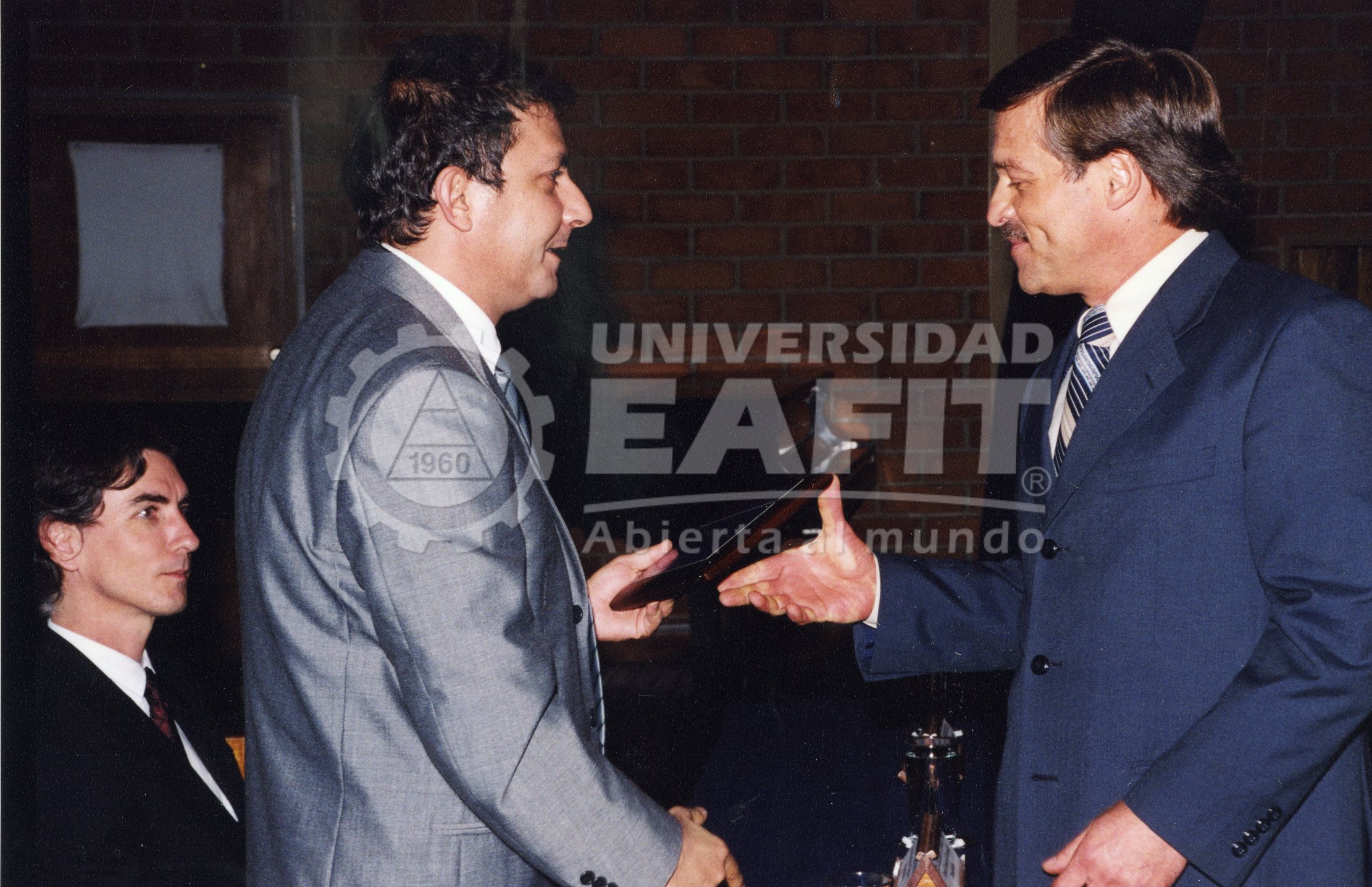 Fotografía tomada durante la entrega de reconocimientos en conmemoración de los 43 años de fundación de la Universidad Eafit, en la que se retrata desde una vista lateral a Juan Guillermo Arango, jefe del Centro de Educación Contínua.