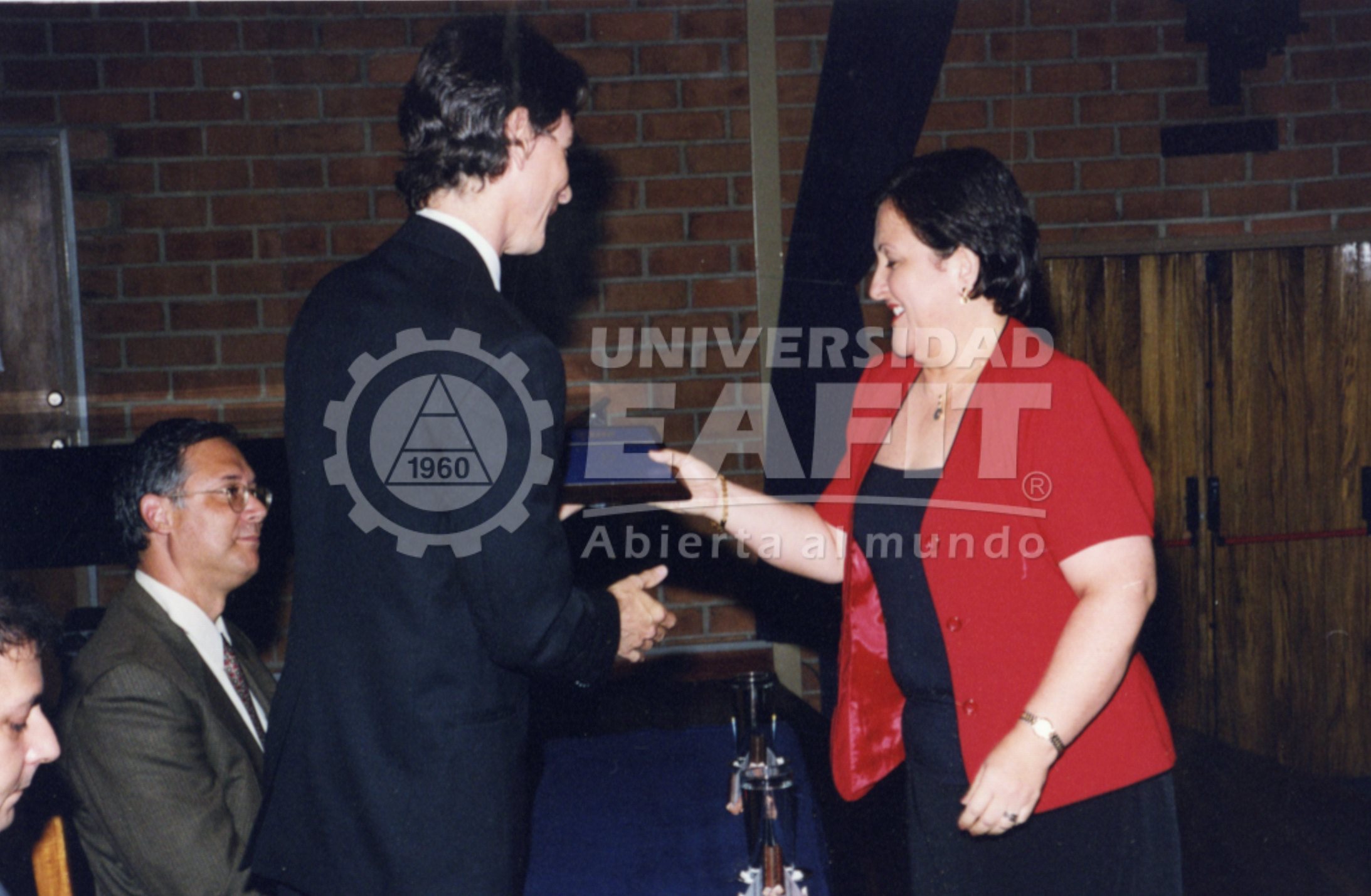 | dc.description.abstract | Fotografía tomada durante la entrega de reconocimientos en conmemoración de los 43 años de fundación de la Universidad Eafit, en la que se retrata desde una vista lateral a Carmen Lucía Trujillo, coordinadora del área de informática. | spa |