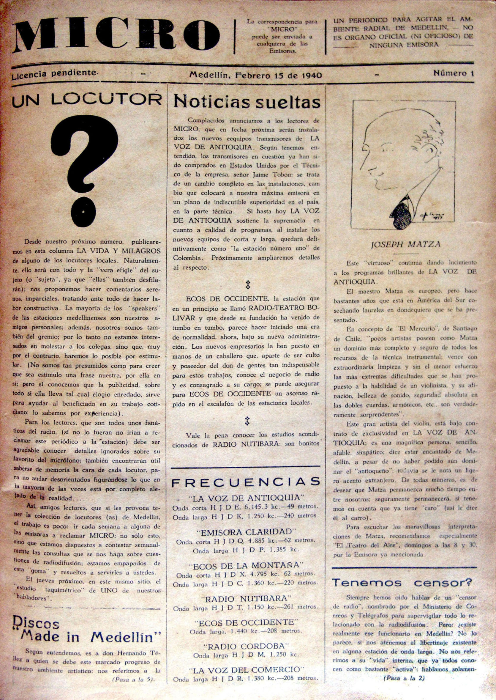 Anuncia que en próximas ediciones publicarán una reseña de la vida de algunos locutores locales. (Medellín).