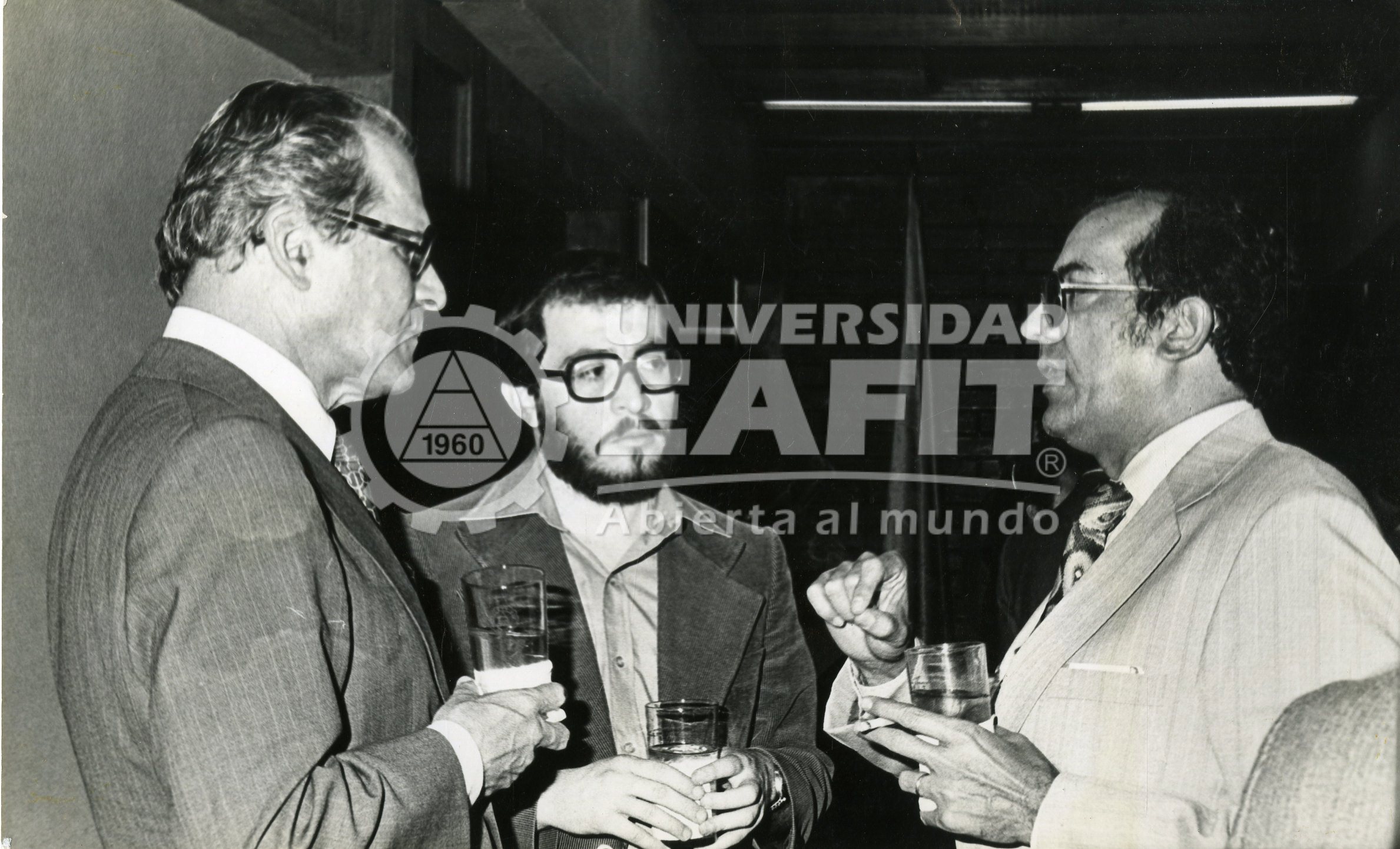 Fotografía grupal tomada durante la Instalación de la carrera de Ingeniería Civil, celebrada el 14 febrero de 1980, en la que se algunos directivos y asistentes. Esta ceremonia fue efectuada ante invitados del Gobierno, otras Universidades y gremios profesionales de esa carrera. La jefatura se encomendó al profesor Hernán Gutierrez Isaza,.