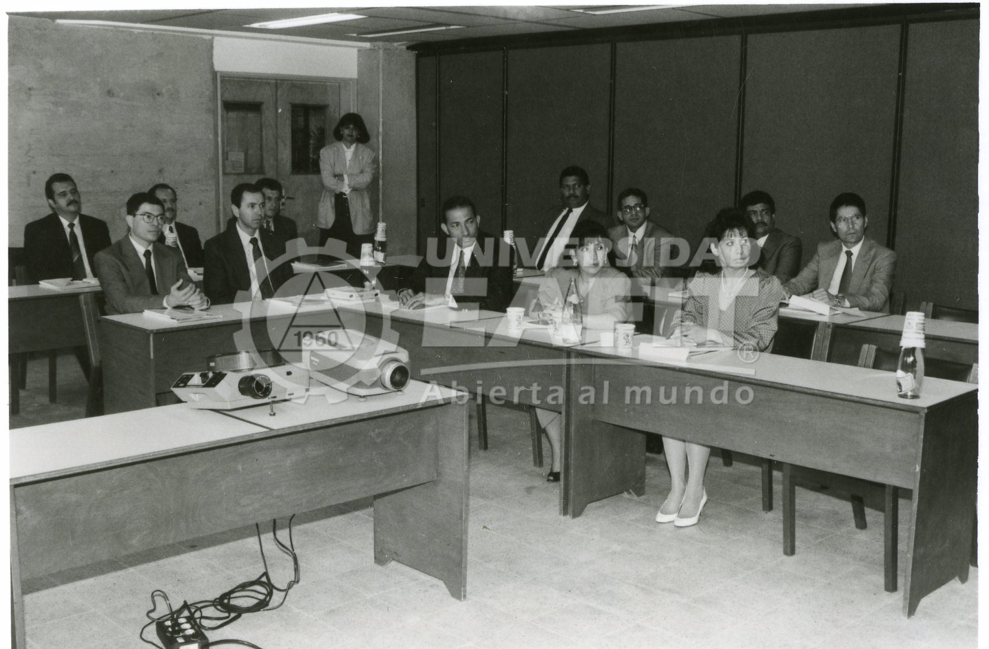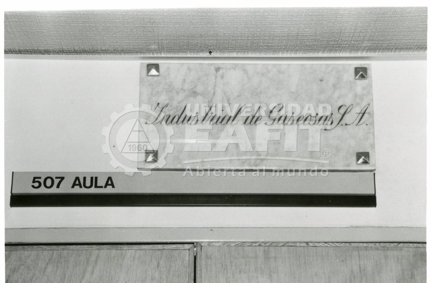 Fotografías tomadas durante la inauguración del aula 507, salón industrial de Gaseosas S.A., en las que se retrata a algunos directivos de la institución desde diferentes ángulos. Se desconoce la fecha de la fotografía.