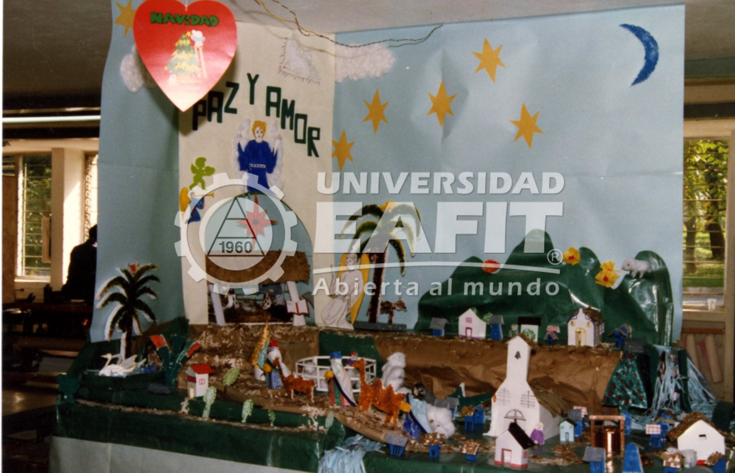Fotografías tomadas durante el concurso de pesebres y novenas de la Universidad, en diciembre del año 1989, en la que se retratan los pesebres elaborados por los concursantes. Se desconoce el lugar de las fotografías.